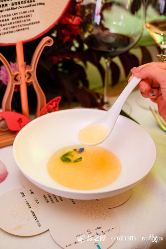 燕窩,被譽為“東方珍品”,是中式飲食文化的璀璨明珠。隨著時代的發(fā)展,燕窩的食用方式演變出更多可能,虜獲食客味蕾。魯采,國內(nèi)一家以魯菜榮膺“米其林”的餐廳,品牌長期致力于高端食材領(lǐng)域的鉆研,現(xiàn)今已成為LU STYLE生活美學(xué)集合體。此次盛宴,燕之屋聯(lián)合魯采米其林廚師團隊創(chuàng)制專屬燕窩菜品——清湯燕窩,精選燕之屋高品質(zhì)燕窩為原料入菜,經(jīng)魯采廚師團隊精心烹調(diào),湯汁濃郁鮮美,激發(fā)味蕾的咸鮮之感的同時,更以新穎獨到的方式傳遞燕窩健康滋養(yǎng)之美,帶給舌尖和心靈的雙重享受。而由燕之屋聯(lián)手世界甜品大師葉衛(wèi)大師匠心打造的燕之屋·龍騰燕舞·燕窩爆果粒冰晶粽則作為晚宴甜品,驚艷亮相。每一枚粽子內(nèi)餡中含有350mg的燕窩投料,晶瑩的燕窩流心內(nèi)餡肉眼可見,提前傳遞“端午安康”的美好祝福。